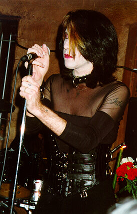 This little culprit is Rozz something. Christian Death. Har!! A pathetic little Manson wanna be. He's obviously a cross between Trent Reznor and MM. Any self loathing goth would see that. Too bad so sad. CAme to late my little one. When I get more info I'll keep you updated.